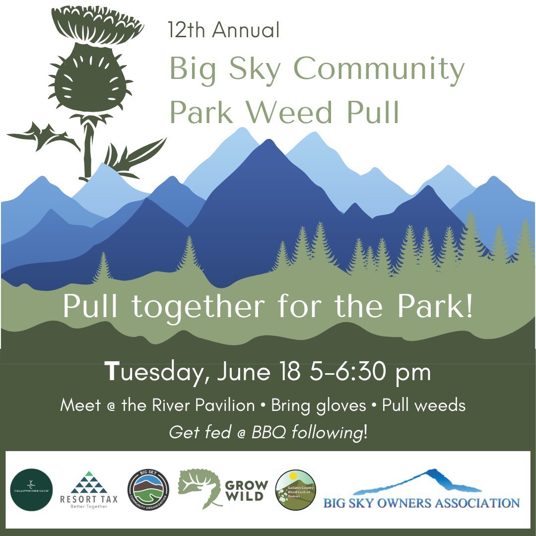 Join us and our partners to Pull for the Park Tuesday, June 18! Rendezvous at the River Pavilion, pull some weeds between 5-6:30pm, & get fed at the BBQ afterwards. Help out and love the Park some love!